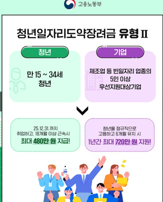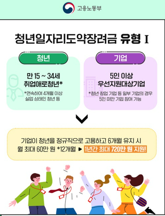 ("5인 이상 우선지원대상기업"이 "만 15세~34세"의 "취업애로청년"을 정규직으로 채용하여 6개월 이상 고용을 유지하는 경우 기원지원을 받을 수 있습니다)